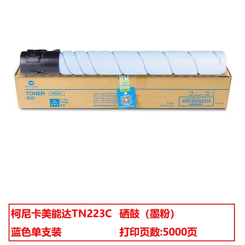 柯尼卡美能达TN223C小容原装碳粉(鼓粉分离)蓝色单支装(个) (适用C226/C266)打印页数:5000墨粉重量:107g