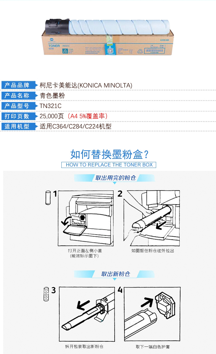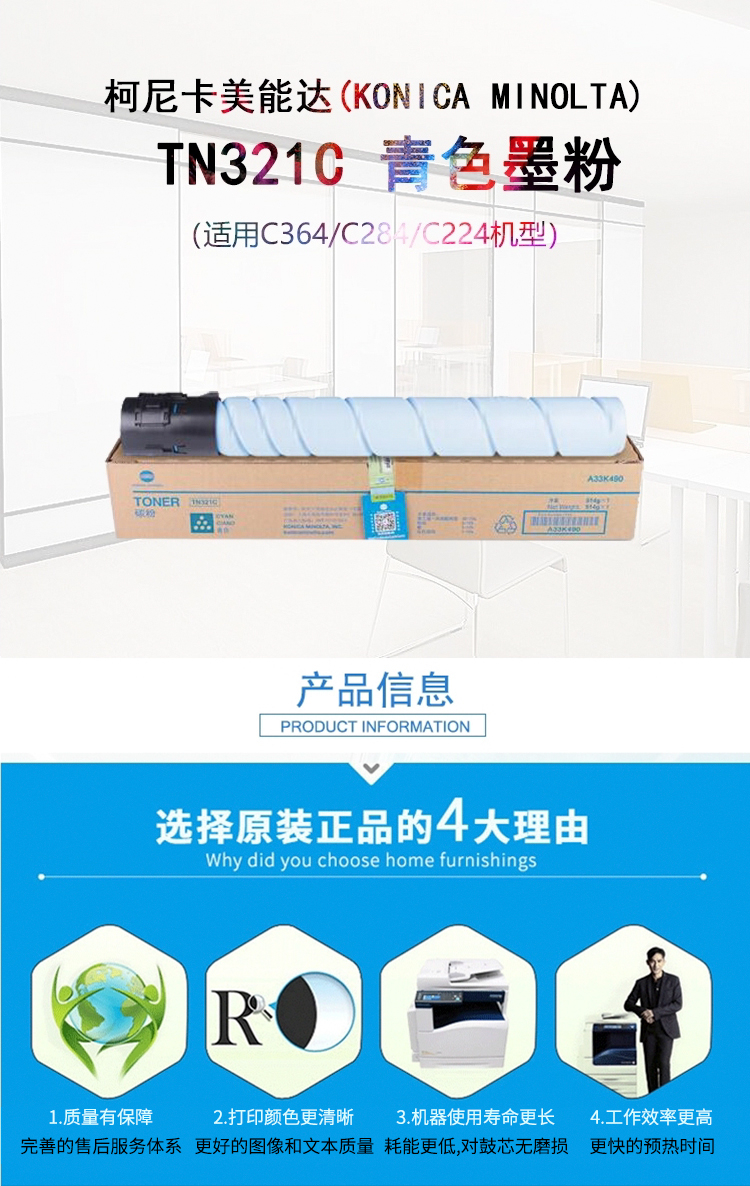 柯尼卡美能达TN321C原装粉仓蓝色(个)(适用C364/C284/C224 )