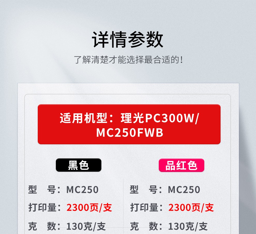商品标题:理光MC250型黑色墨粉盒适用于PC300W/MC250FWB(支)
