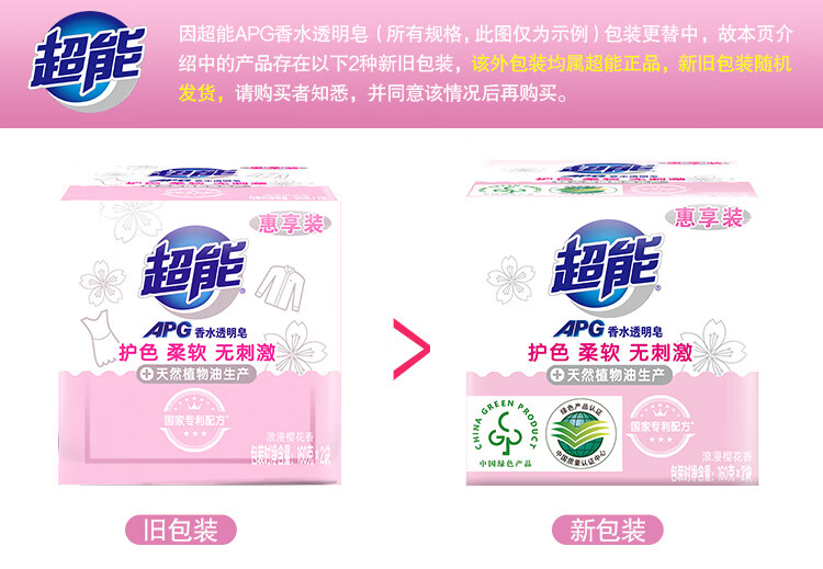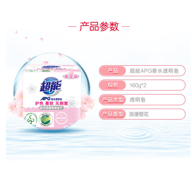 商品标题:超能APG香水透明皂(浪漫樱花)160g*2(单位:组)