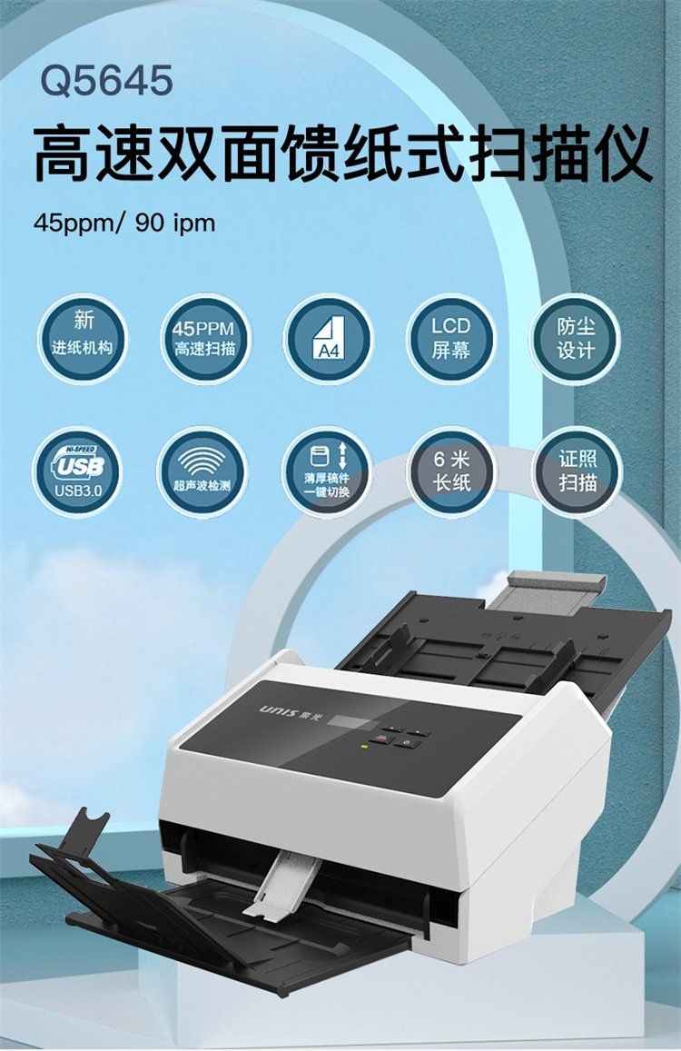 紫光(UNIS)Q5645 馈纸扫描仪 A4幅面自动进纸高速高清双面48bit(单位:台)