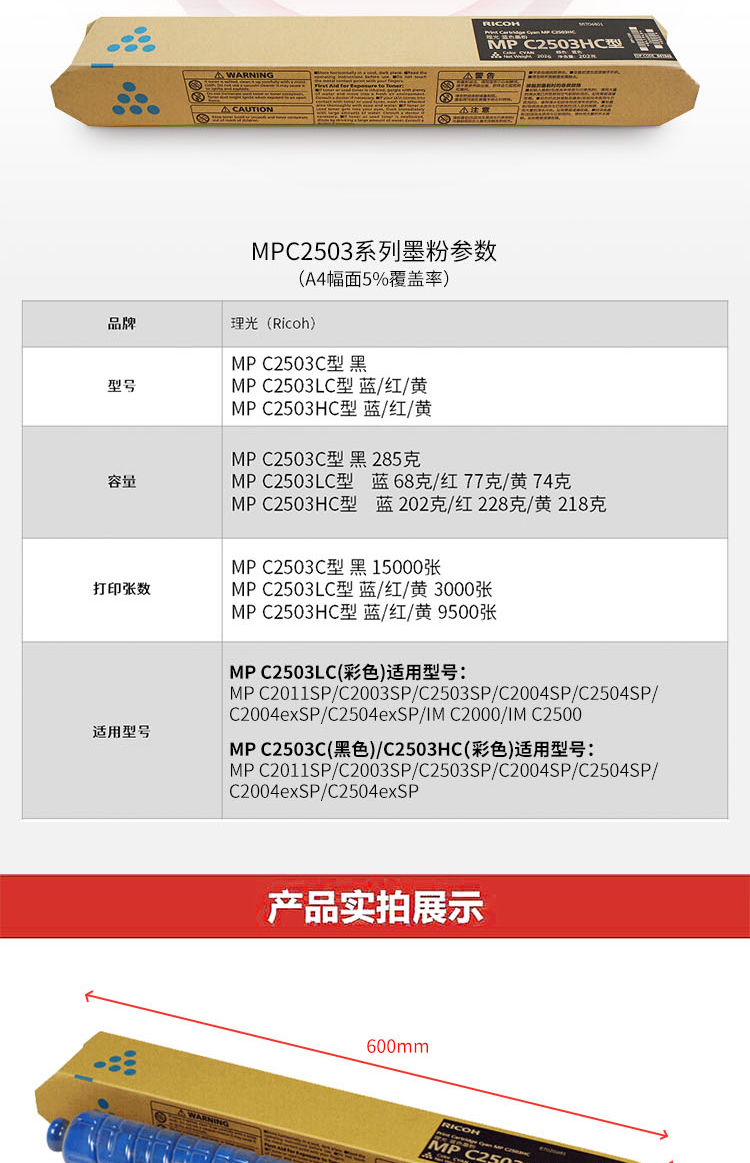 商品标题:理光 MP C2503HC 原装碳粉蓝(单位:支)