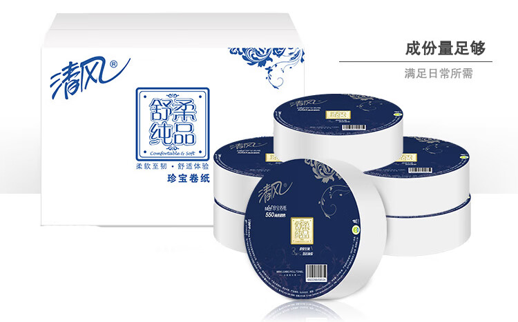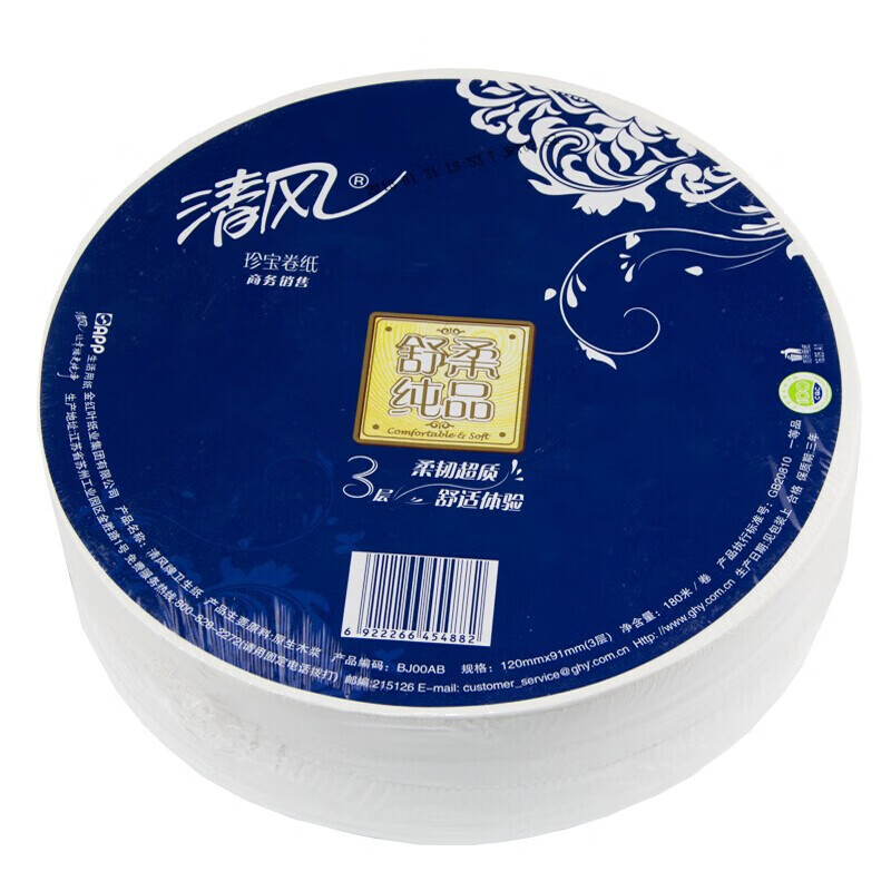 商品标题:【停用】清风BJ00AB大卷纸舒柔纯品3层平纹180米120*91mm12卷/箱(箱)