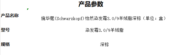品牌:施华蔻(Schwarzkopf);型号:染发霜3.0/9羊绒脂深棕;商品规格:染发霜3.0/9羊绒脂深棕;商品标题:施华蔻(Schwarzkopf)怡然染发霜3.0/9羊绒脂深棕(单位:盒);销售单位:盒