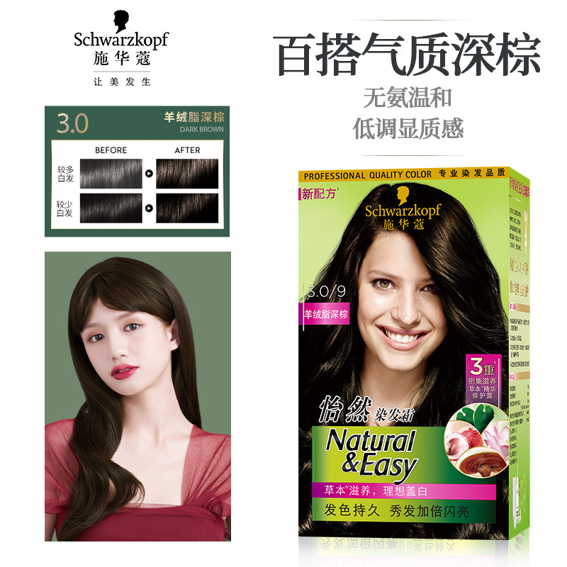 施华蔻(Schwarzkopf)怡然染发霜3.0/9羊绒脂深棕(单位:盒)