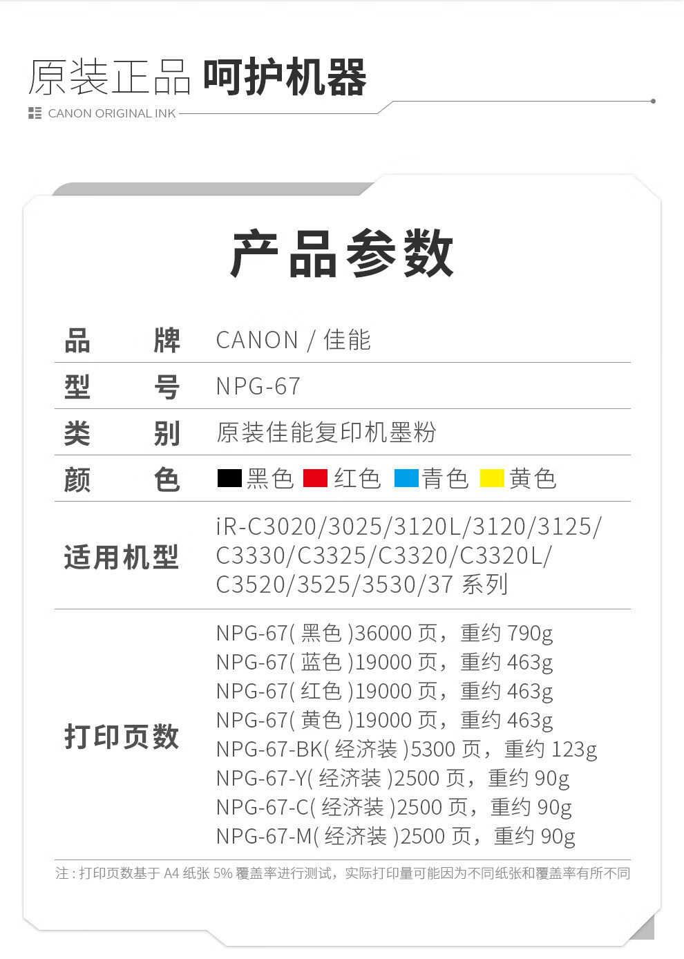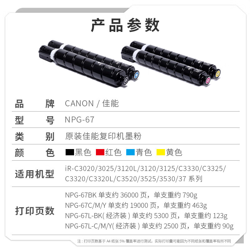 商品标题:佳能 NPG-67ETonerYellow 原装墨粉 (单位:支) 黄