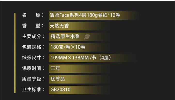 商品标题:洁柔BJ095-10卷筒卫生纸4层/10卷/提6提/箱黑(单位:提)