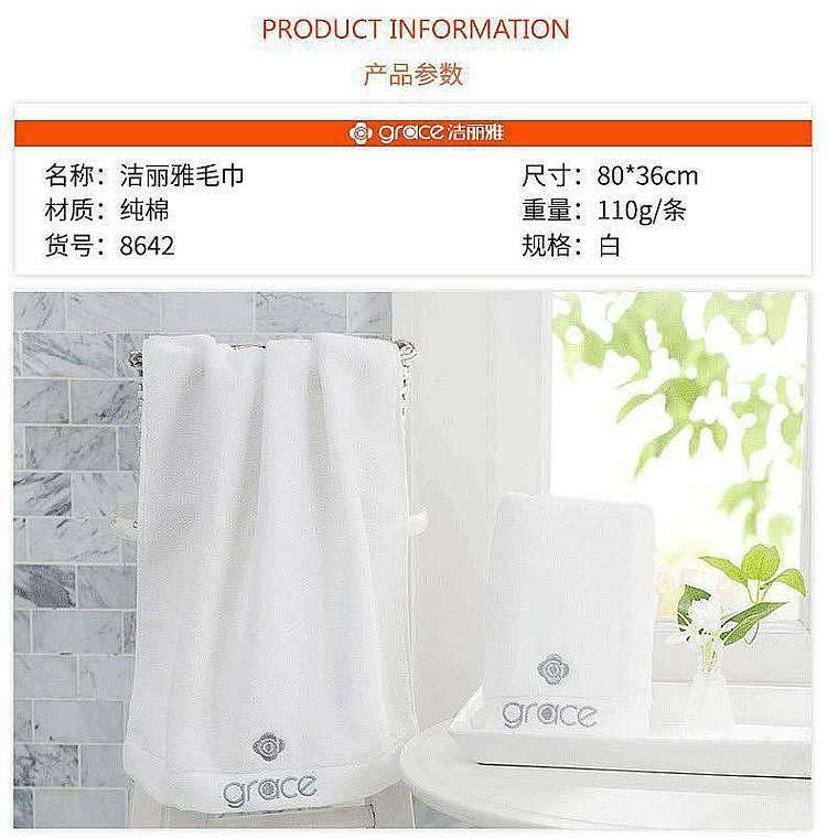 商品标题:洁丽雅8642纯棉强吸水特柔绣花毛巾80*36cm110g(条)