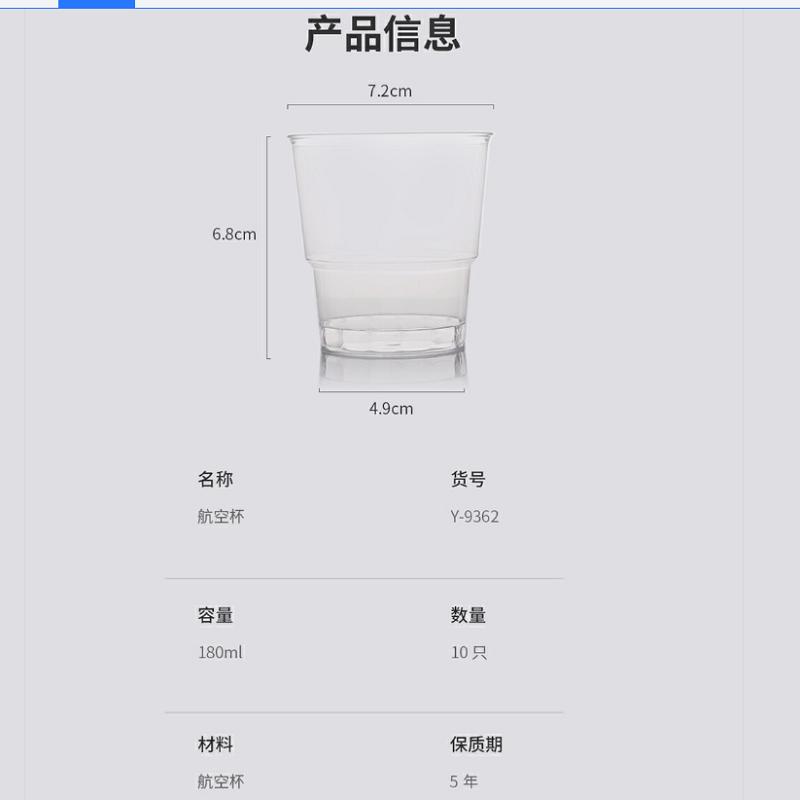 商品标题:宜洁Y-9362宜洁航空杯180ml透明10只*50包/箱(包)
