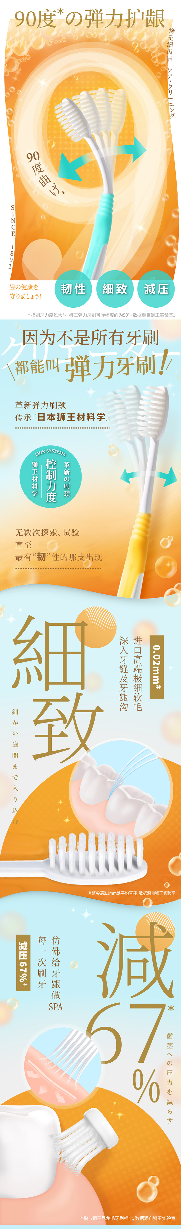 狮王(Lion)0.02mm细齿洁牙刷弹力护龈超极细毛(支)