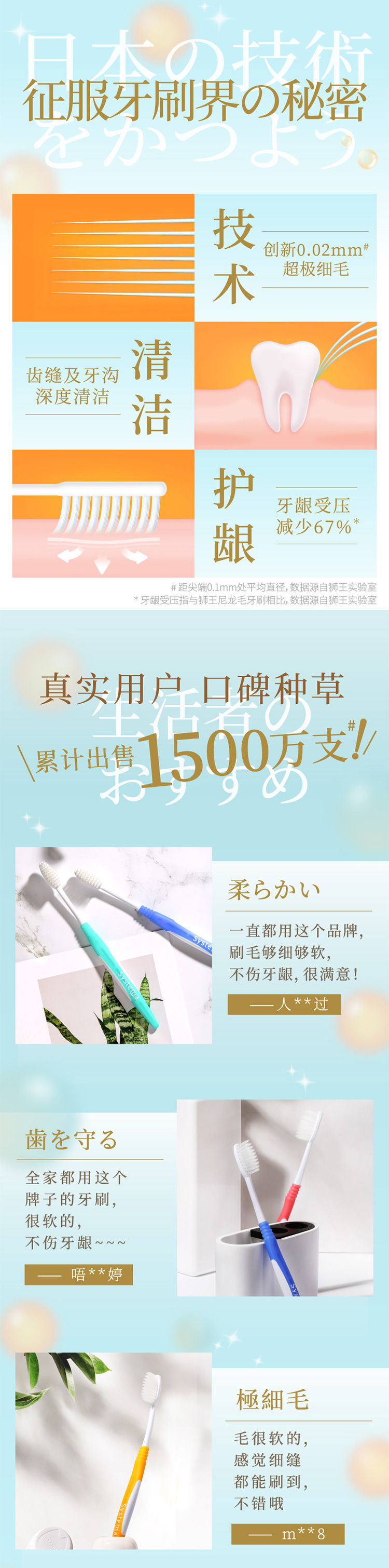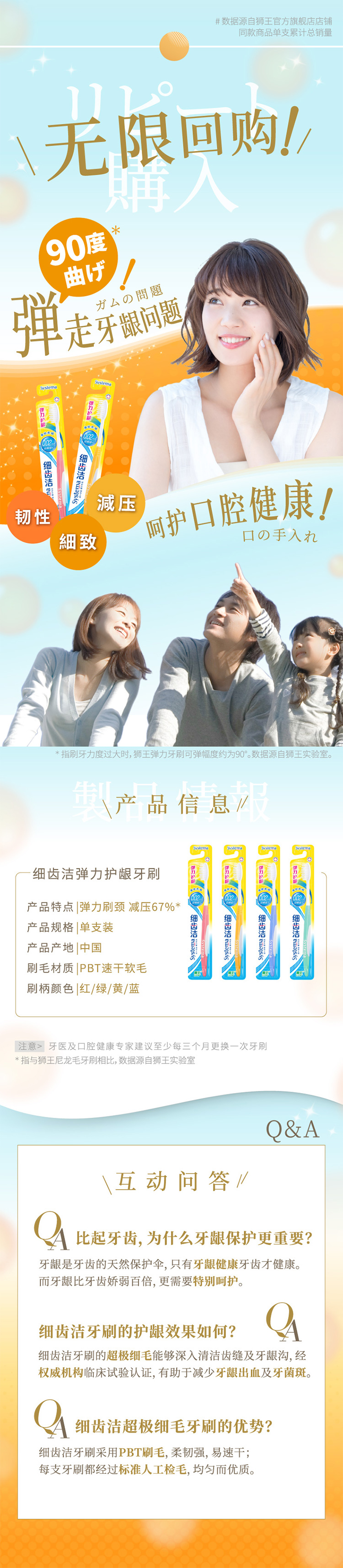 商品标题:狮王细齿洁牙刷弹力护龈超极细毛(支)