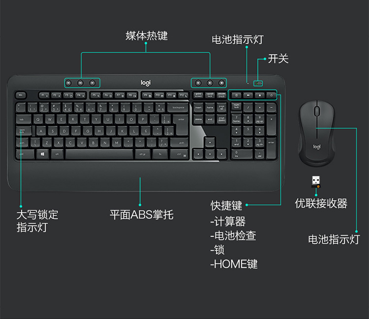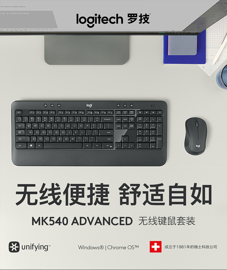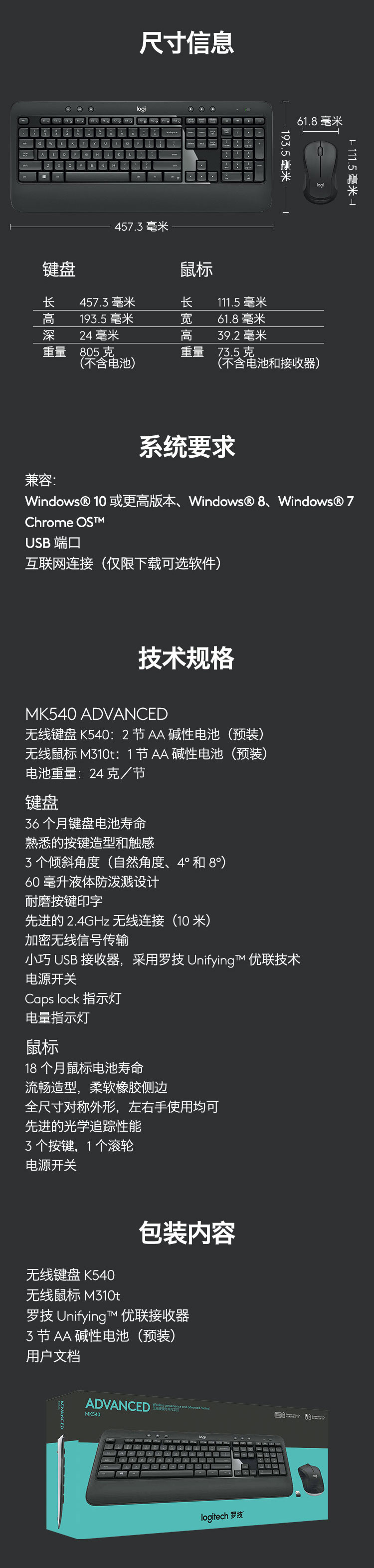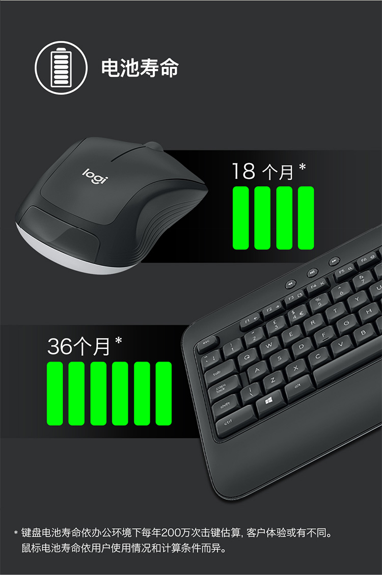 罗技(Logitech)MK540 键鼠套装 无线键鼠套装 办公键鼠套装 全尺寸 黑色 带无线2.4G接收器 (套)