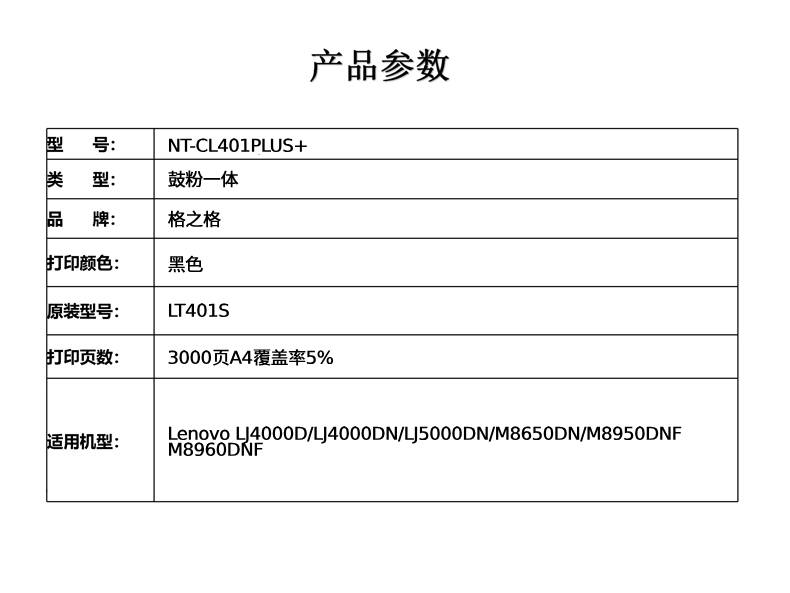 格之格(G&G)NT-CL401PLUS+兼容LT401S粉盒(鼓粉分离)黑色单支装(适用机型:Lenovo LJ4000D/LJ4000DN/LJ5000DN/M8650DN/M8950DNF/M8960DNF)打印量:3000页(个)