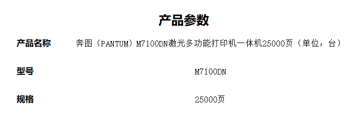 商品标题:奔图M7100DN激光多功能打印机一体机(单位:台)