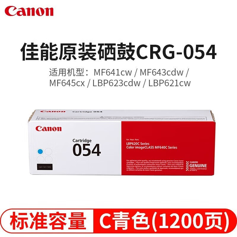 佳能CRG054C原装硒鼓青色 1200页 (个)(适用MF641cw 643Cdw 645cx LBP623Cdw 621cw)