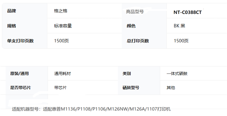 格之格(G&G)NT-C0388CT兼容CC388A鼓粉一体碳粉盒1500页(只)