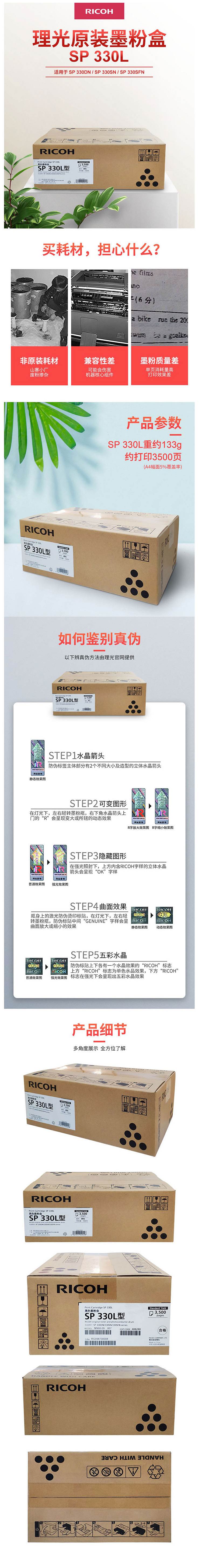 商品标题:理光SP330L原装粉盒(鼓粉一体)黑色单支装(支)(适用SP 330DN/330SN/330SFN)打印页数:3500墨粉