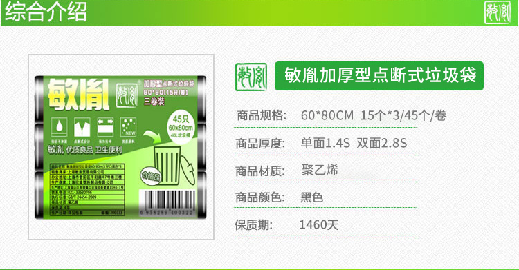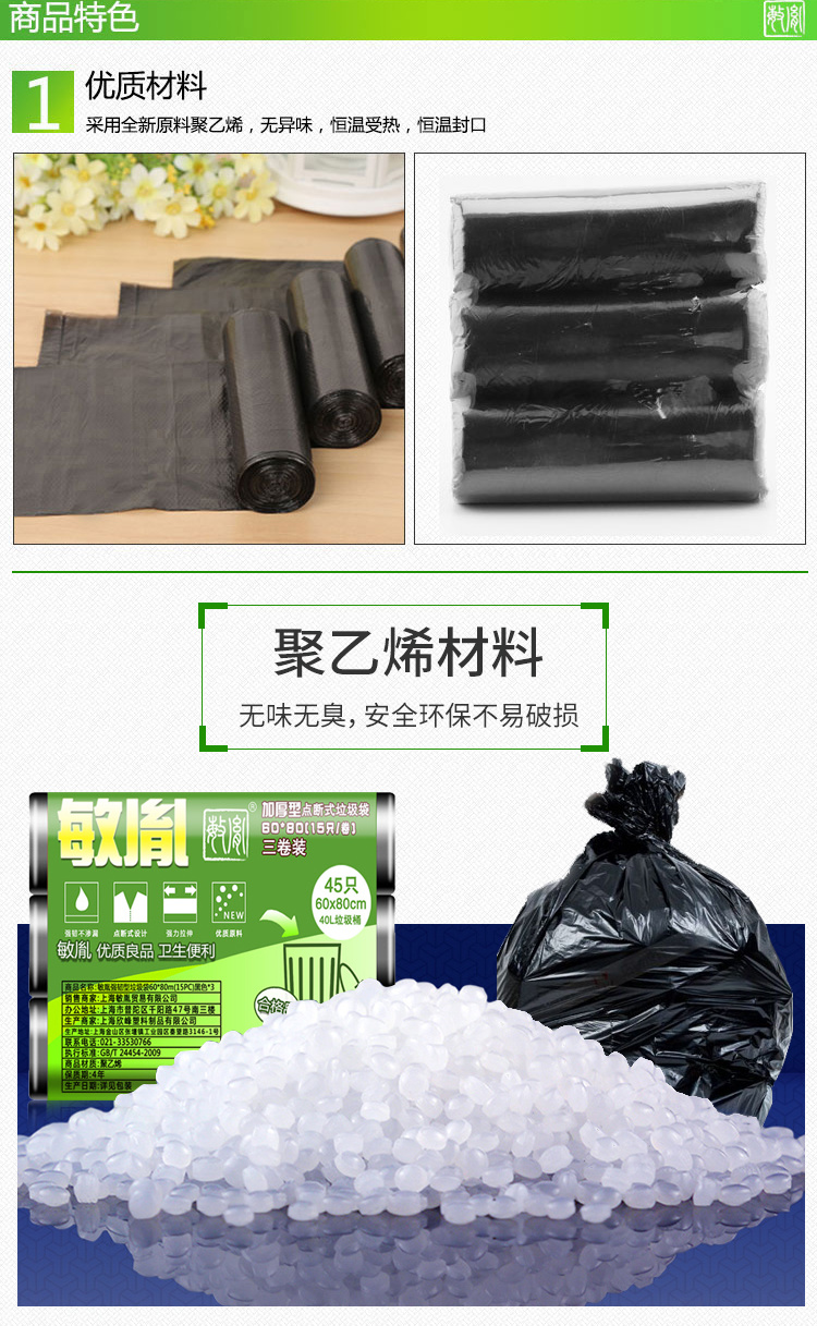 商品标题:敏胤MYL-6080-1加厚点断垃圾袋黑色60*80/15PC*3卷/包(包)
