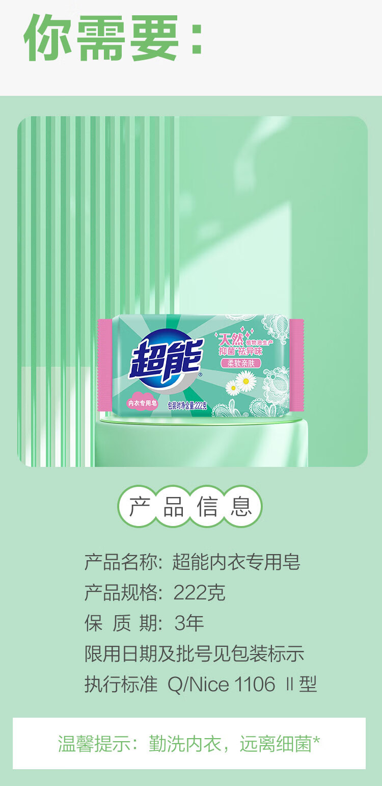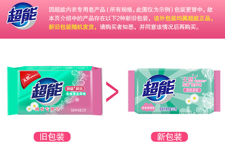 超能内衣专用皂 222g 新老包装随机发货(单位:块)