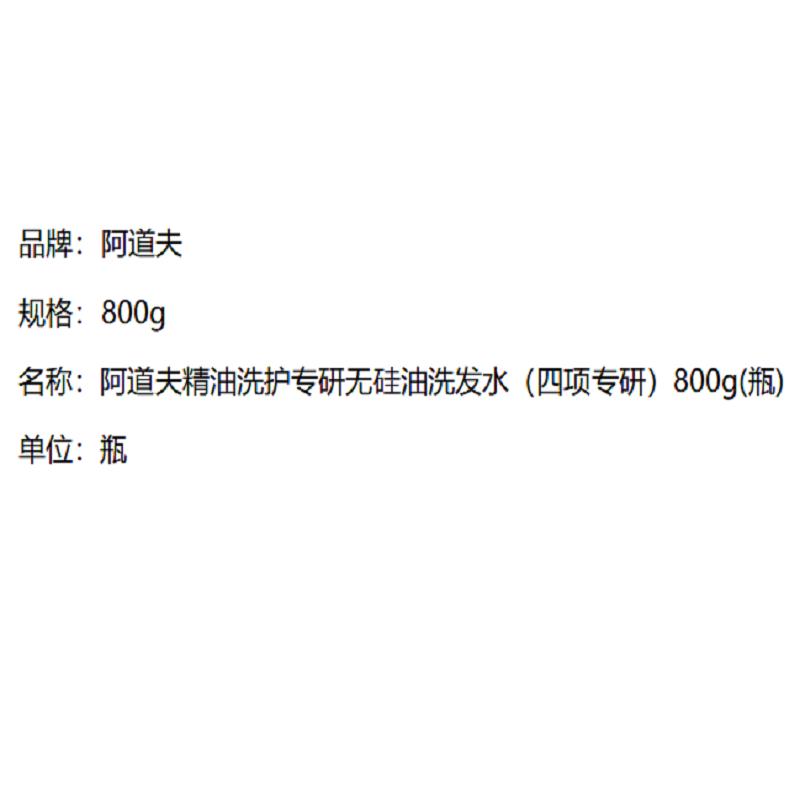 商品标题:阿道夫精油洗护专研无硅油洗发水(四项专研)800g(瓶)