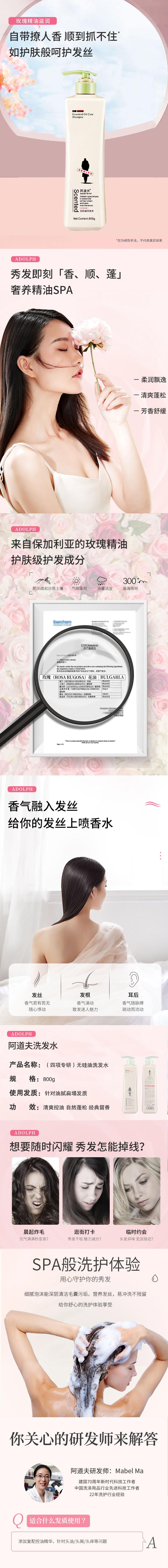 阿道夫精油洗护专研无硅油洗发水(四项专研)800g(瓶)