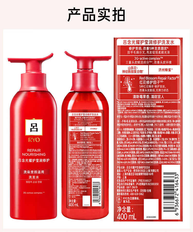 商品标题:吕含光耀护营润修护洗发水400ml(单位:瓶)