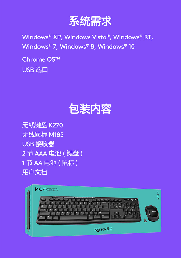 商品标题:罗技MK270无线光电键鼠套装(套)