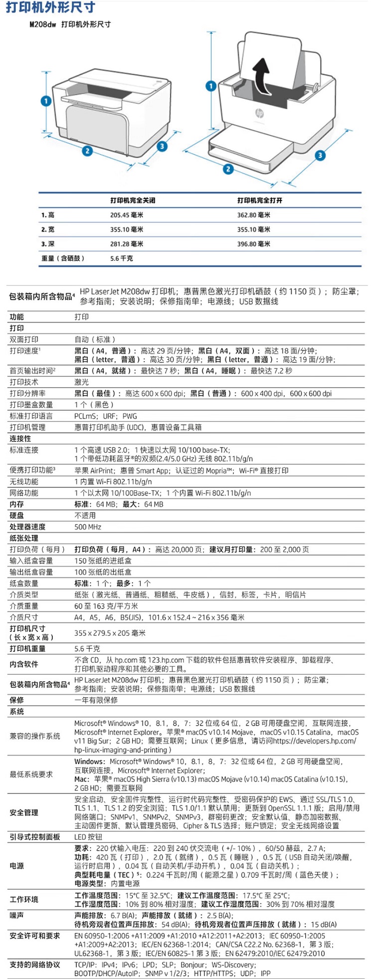 惠普(HP) M208dw 黑白激光打印机A4 单面29页/分钟 双面18页/分钟(台)