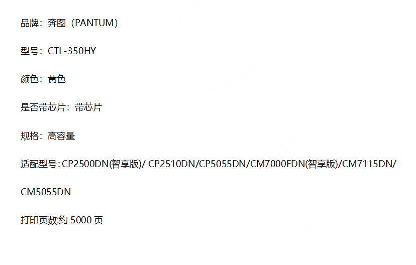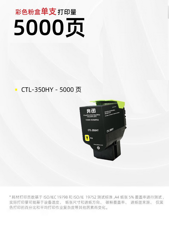 商品标题:奔图(PANTUM)CTL-350HY粉盒黄色(支)(适用CP2500DN(智享版)/CP2510DN/CP5055DN/CM7000FDN(智享版)/CM7115DN/CM5055D)5000页