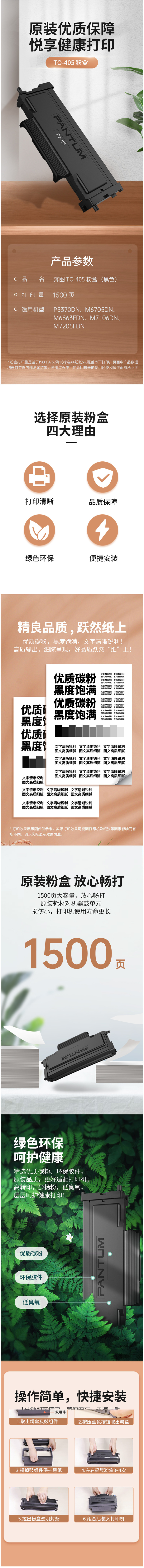 商品标题:奔图 TO-405 原装硒鼓(墨粉) 黑色单支装(适用 P3370DN/M6705DN/M6863FDN/M7106DN/M7205FDN系列)打印页数:1500