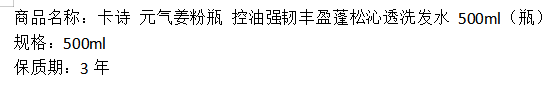 商品标题:卡诗 元气姜粉瓶 控油强韧丰盈蓬松沁透洗发水 500ml(瓶)