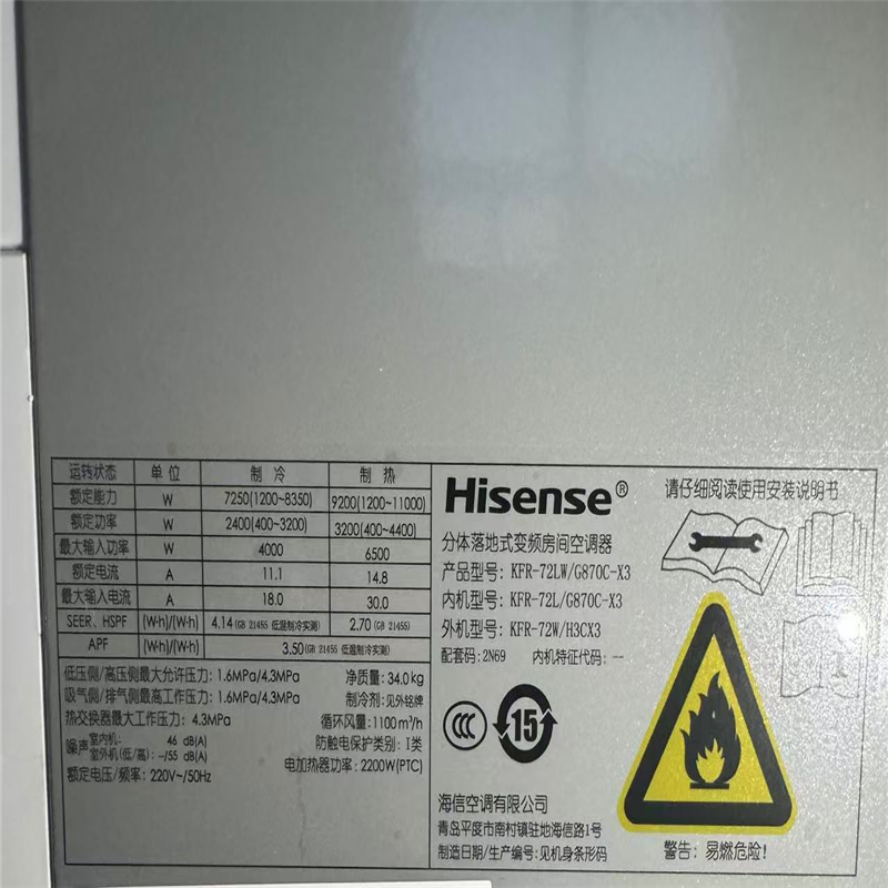 商品标题:海信(Hisense)KFR-72LW/G870C-X3 立柜式空调(套)