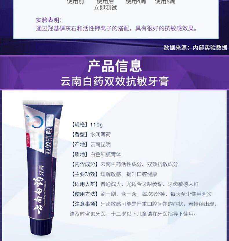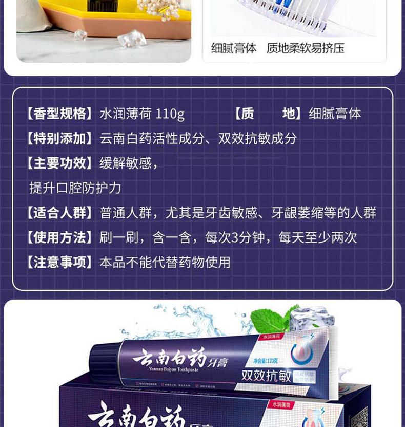 商品标题:云南白药双效抗敏水润薄荷牙膏110g(单位:支)