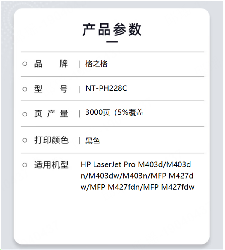 名称:格之格NT-PH228C兼容CF228A碳粉盒(个)