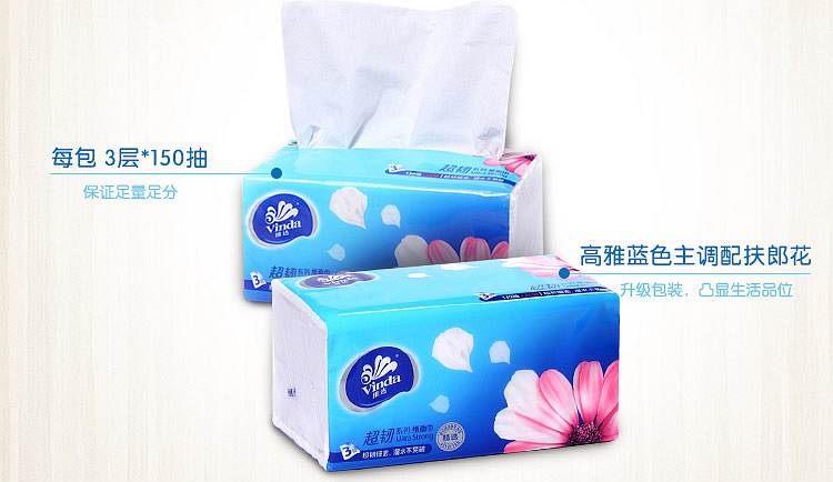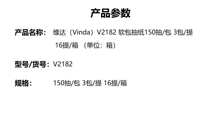 商品标题:维达 V2182 软包抽纸150抽/包16提/箱 (单位:箱)