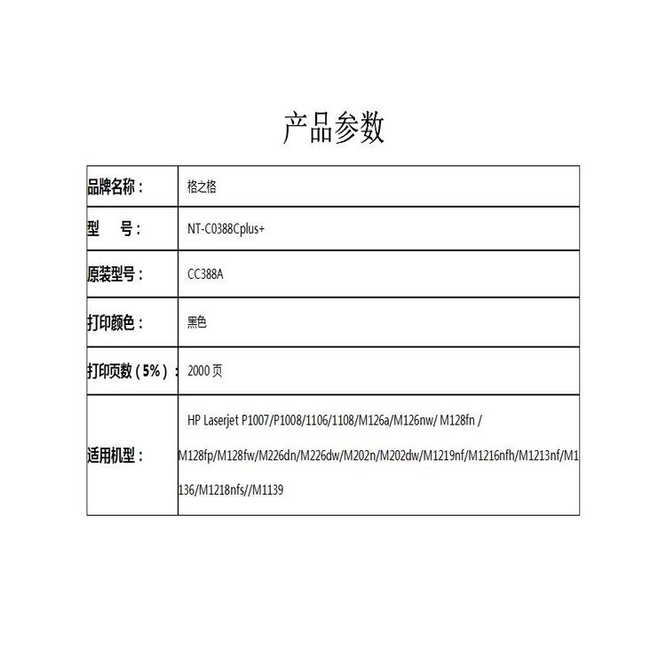 商品标题:格之格NT-C0388Cplus+硒鼓黑色2000页(个)
