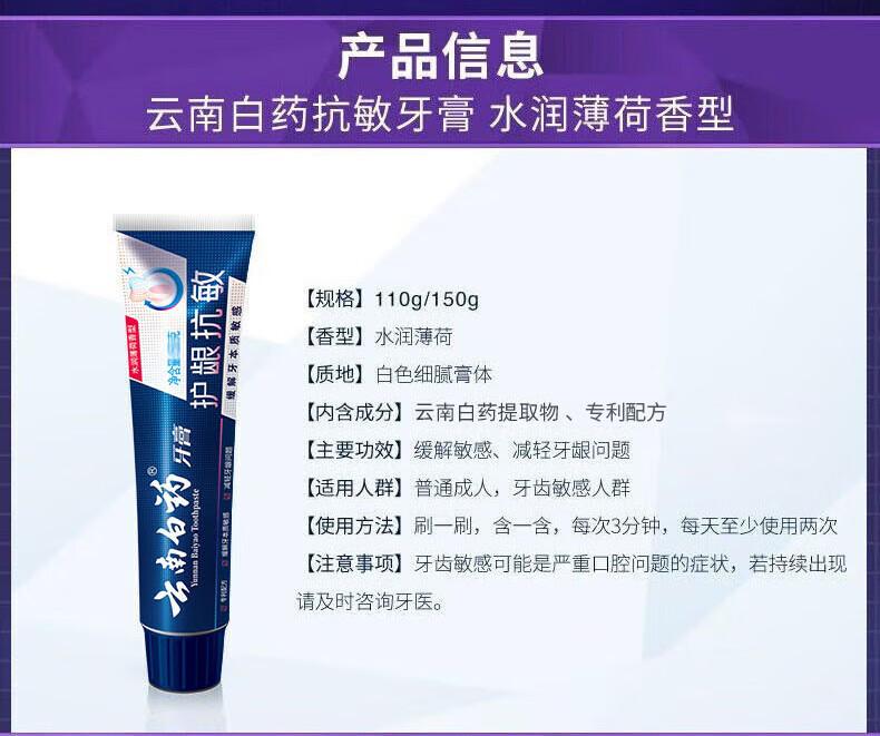商品标题:云南白药150g牙膏双效抗敏水润薄荷(单位:支)