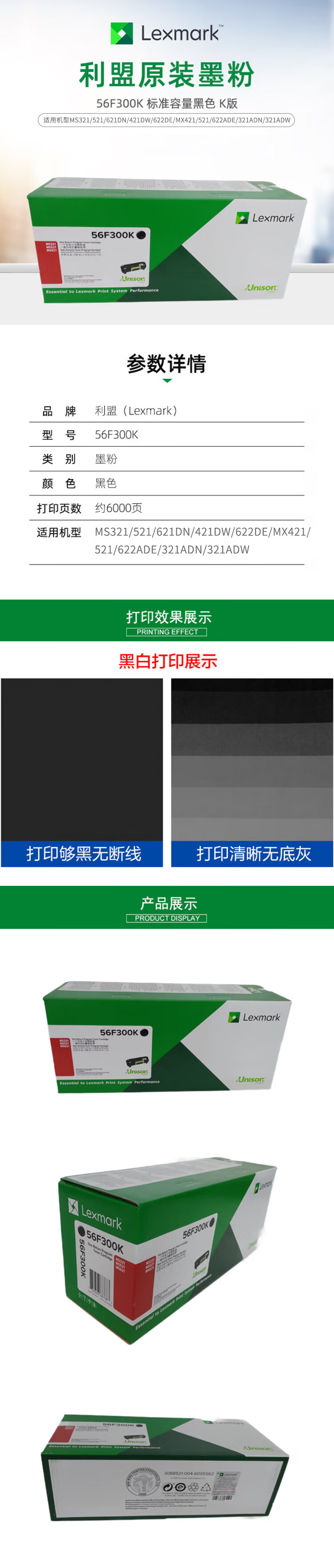 商品标题:利盟(Lexmark)56F300K 标容黑色墨粉(支)