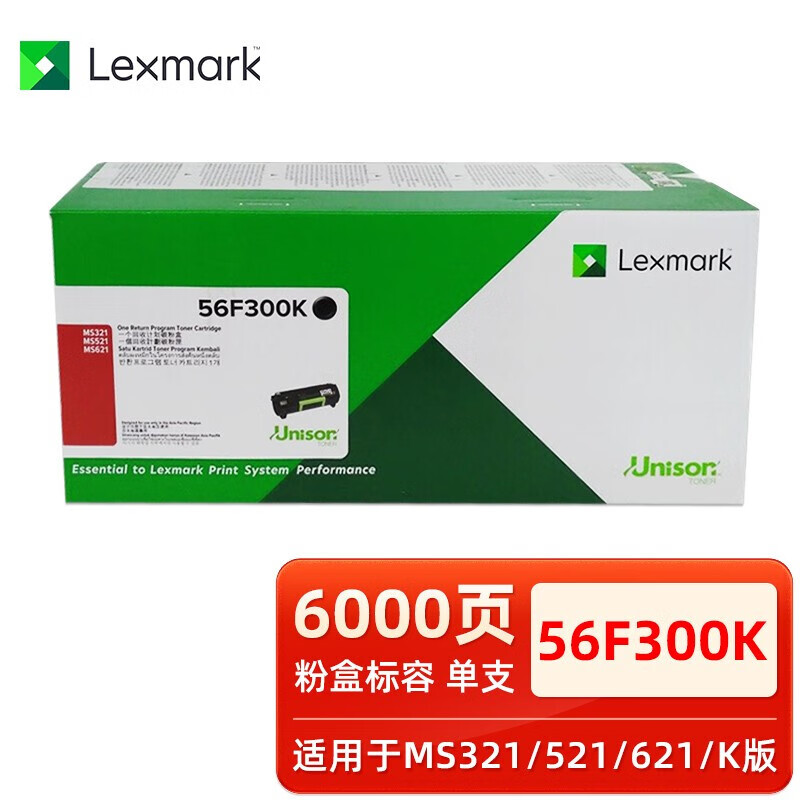 利盟(Lexmark)56F300K 标容黑色墨粉 黑色K版 适用于MS321/421/MS521/MS621 (支)
