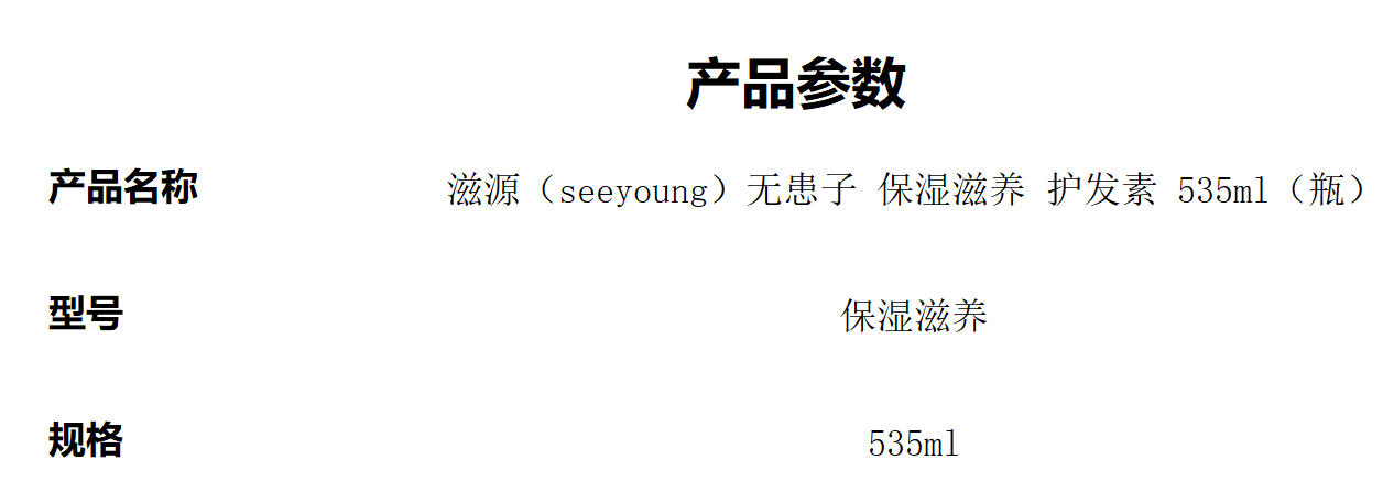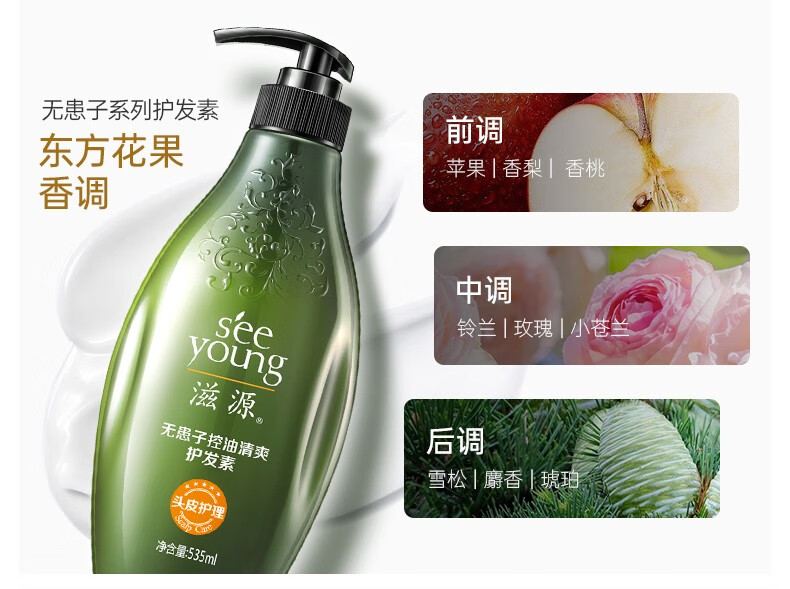 商品标题:滋源 无患子 保湿滋养 护发素 535ml(瓶)