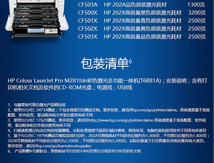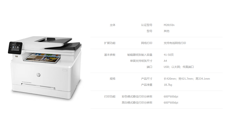 商品标题:惠普 M281FDN 彩色激光一体机 (单位:台)