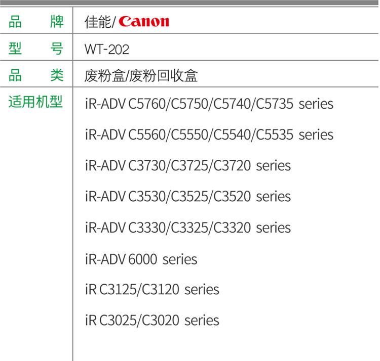 商品标题:佳能WT-202废粉盒(单位:个)(适用IRC3020/3120/3125/3520机型)
