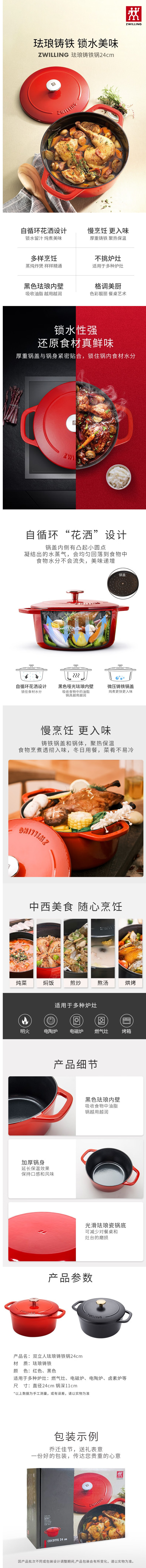 商品标题:双立人(ZWILLING) 珐琅锅铸铁锅炖煮煲汤锅辅食焖煮锅煎炒锅微压多功能烹饪锅具 珐琅锅红色 24cm 3.5L(个)