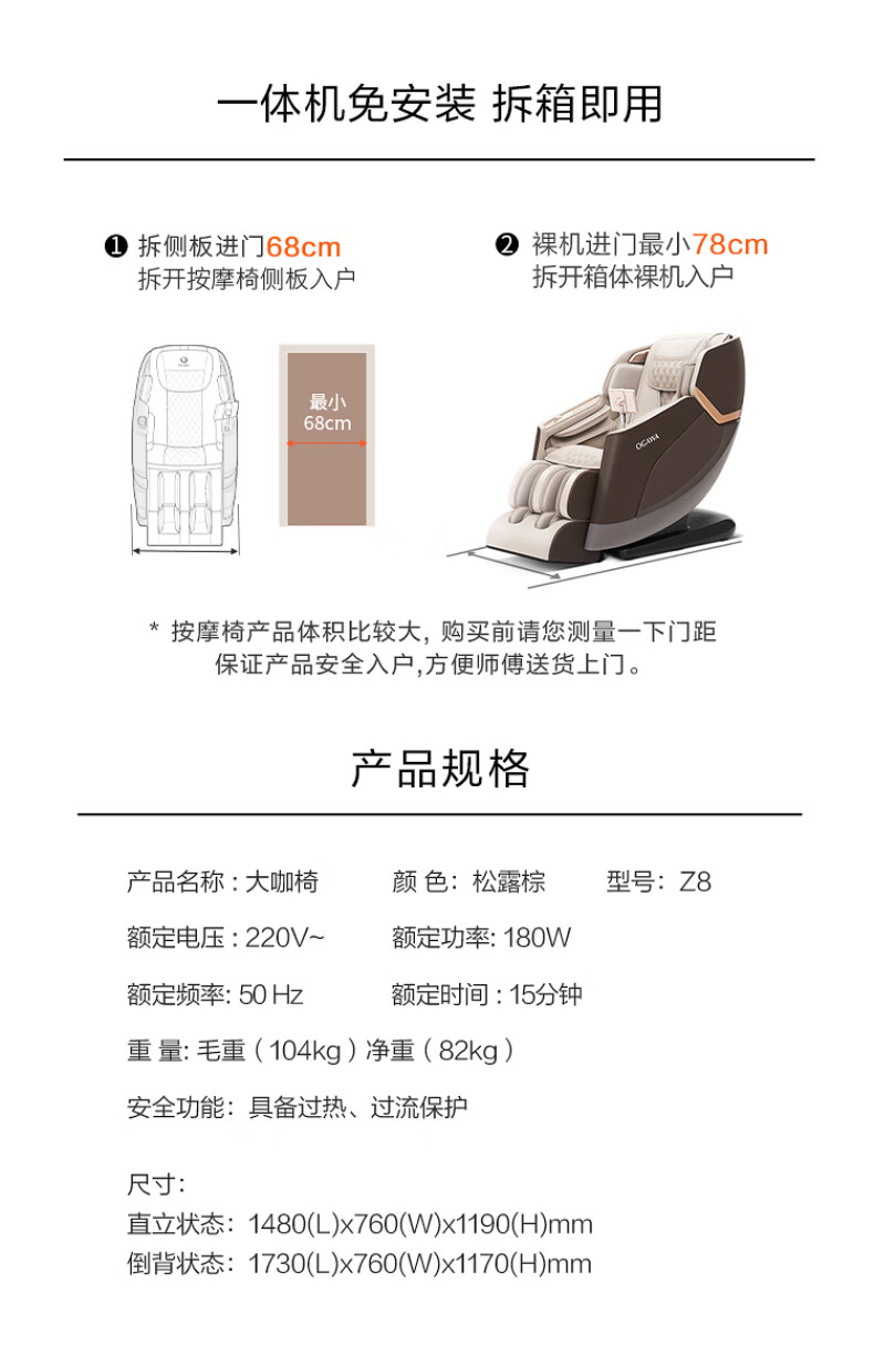奥佳华家用按摩椅Z8 松露棕(台)