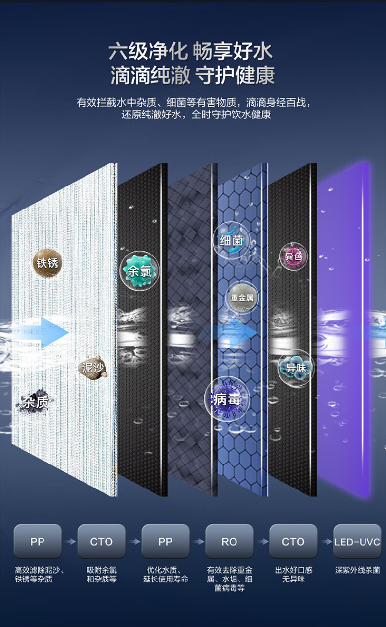 滤芯:活性碳滤芯,PP棉,RO反渗透膜
