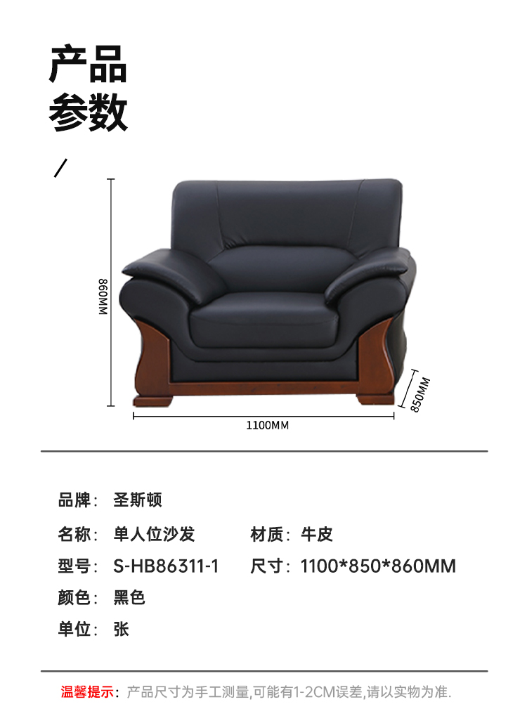 商品标题:圣斯顿S-HB86311-1中式牛皮单人位沙发1100*850*860mm(张)黑色