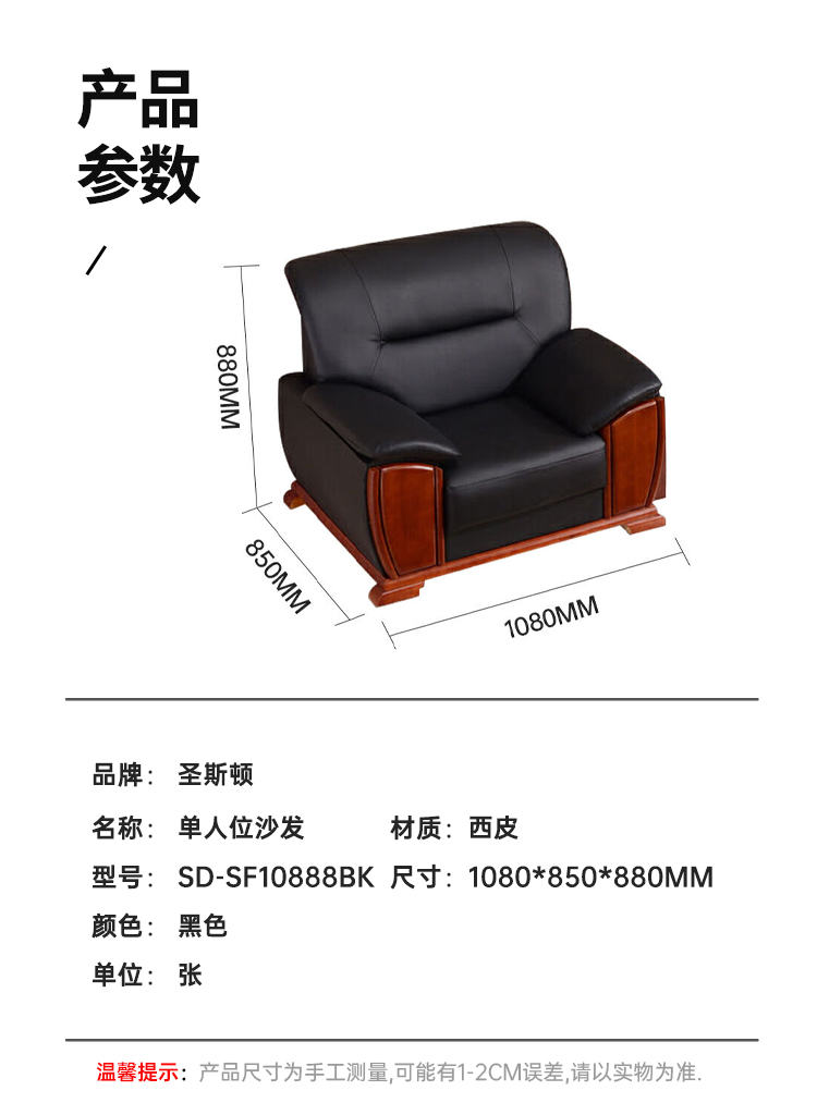 商品标题:圣斯顿SD-SF10888BK单人位西皮沙发1080*850*880mm(单位:张)黑色定制