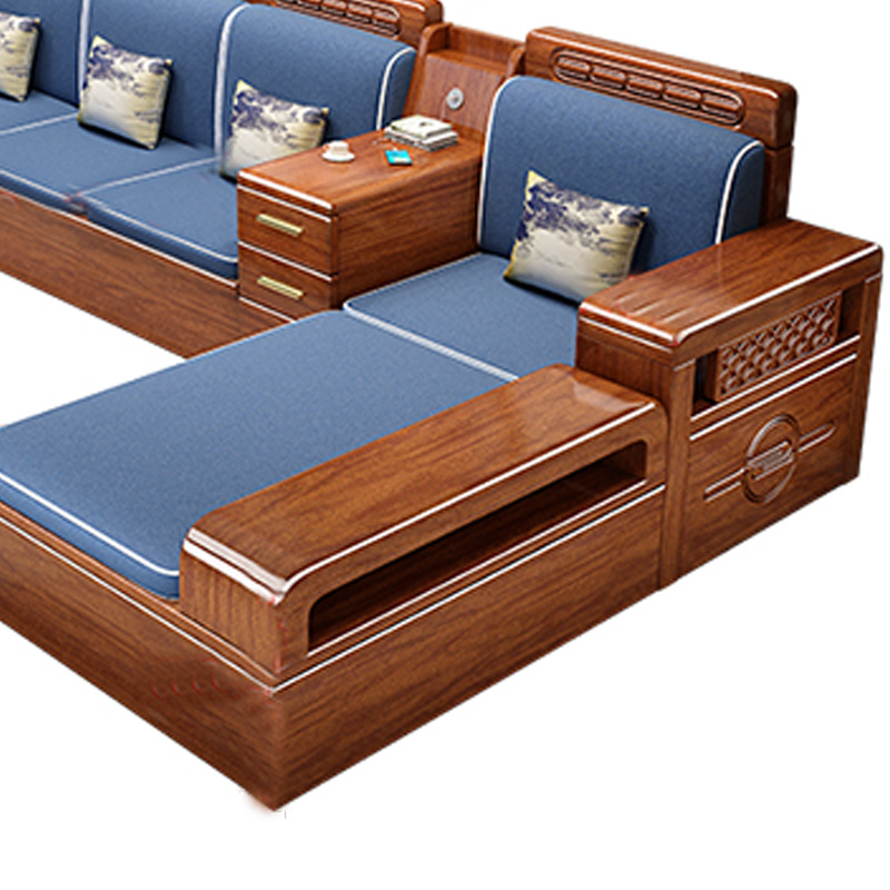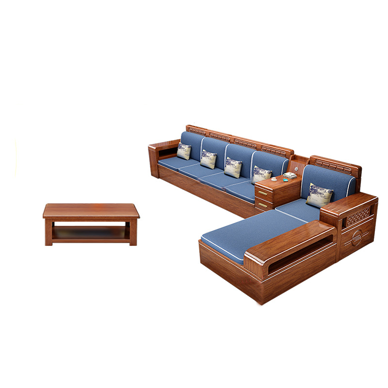 圣斯顿S-SF3600实木组合沙发5人位+贵妃位+中箱+茶几1440*3596*850mm(单位:套)胡桃色