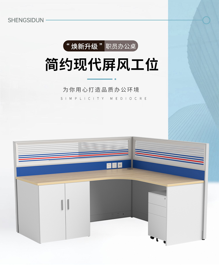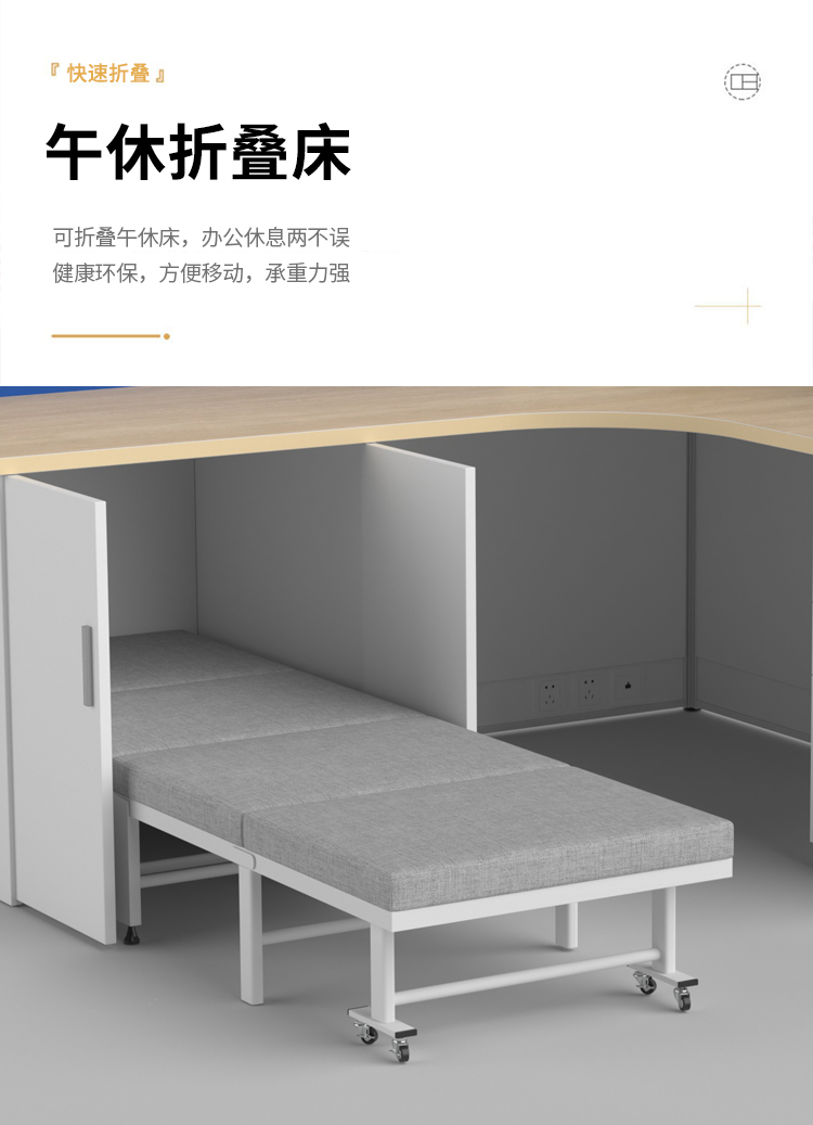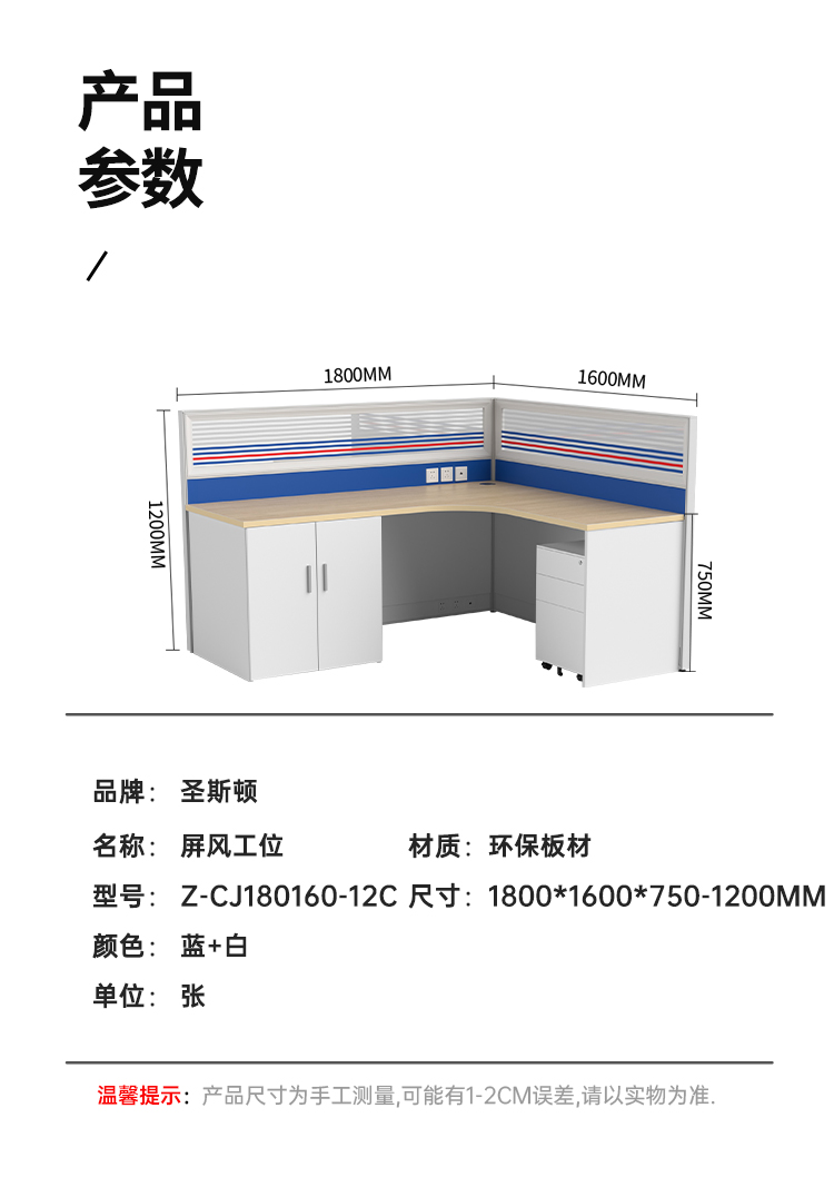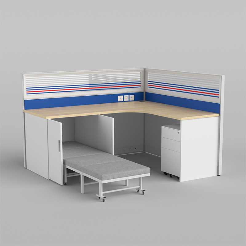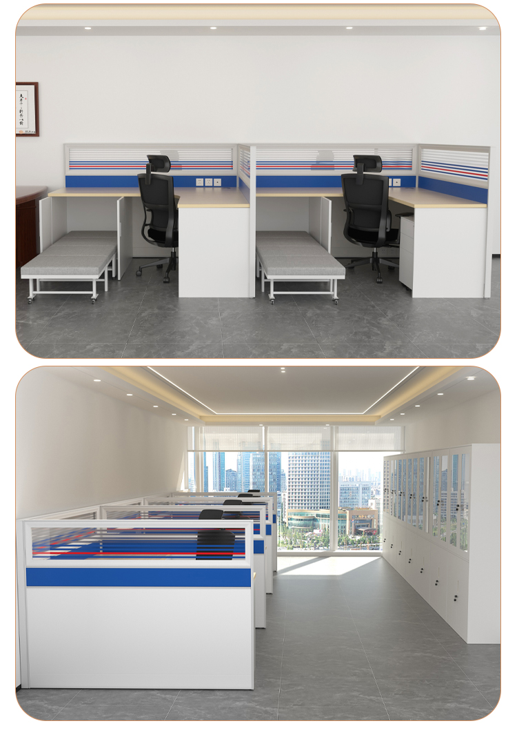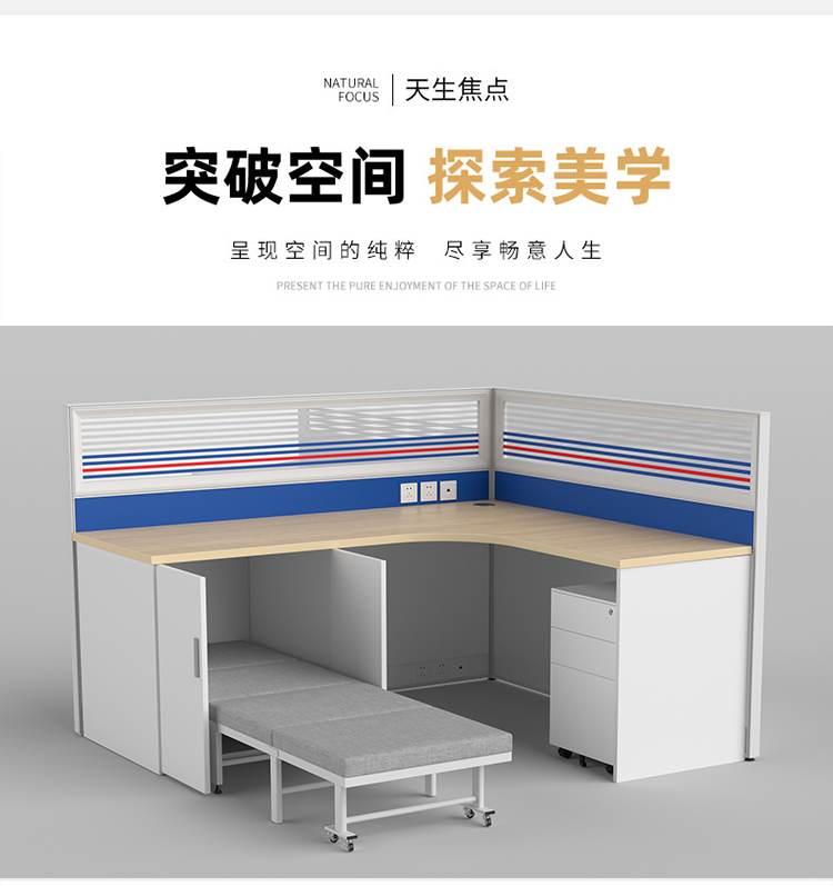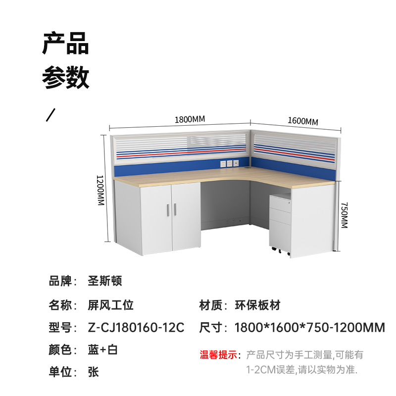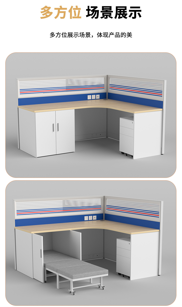 商品标题:圣斯顿Z-CJ180160-12C屏风工位L型办公桌含床柜折叠床活动柜1800*1600*750-1200mm(张)蓝+白