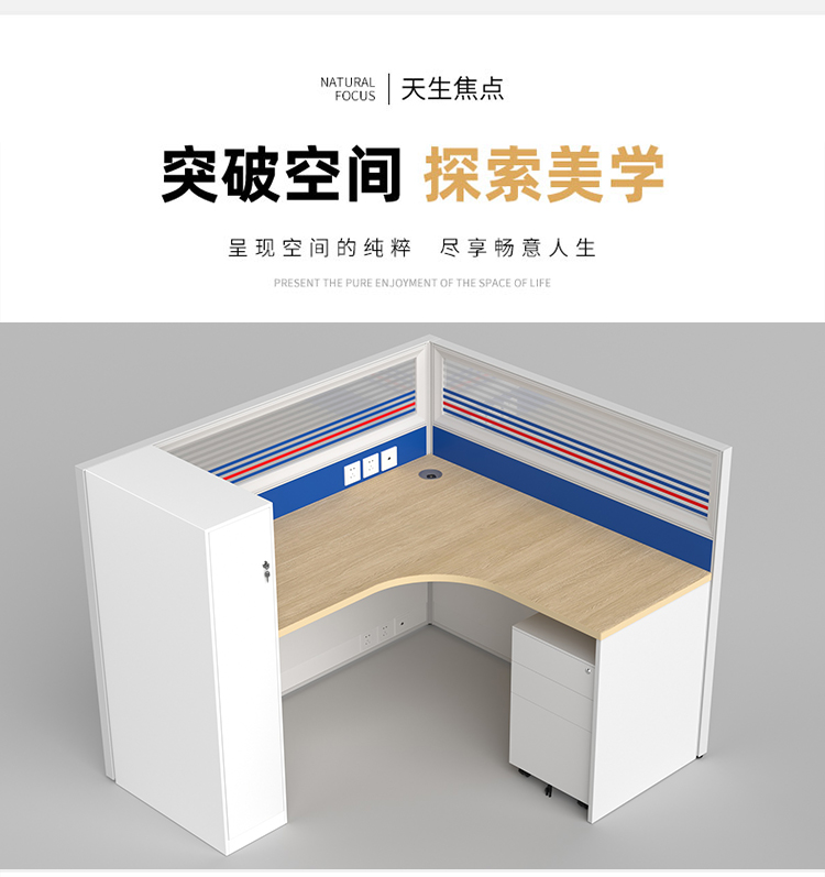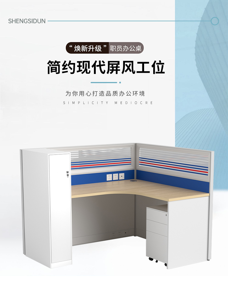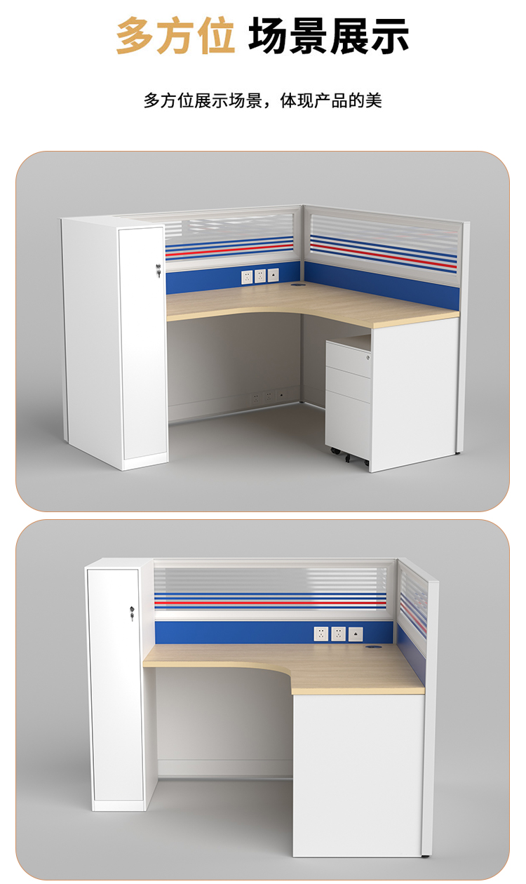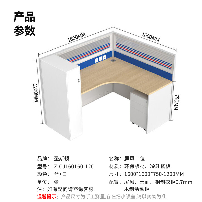 商品标题:圣斯顿Z-CJ160160-12C屏风工位L型办公桌含衣柜活动柜1600*1600*750-1200mm(张)蓝+白